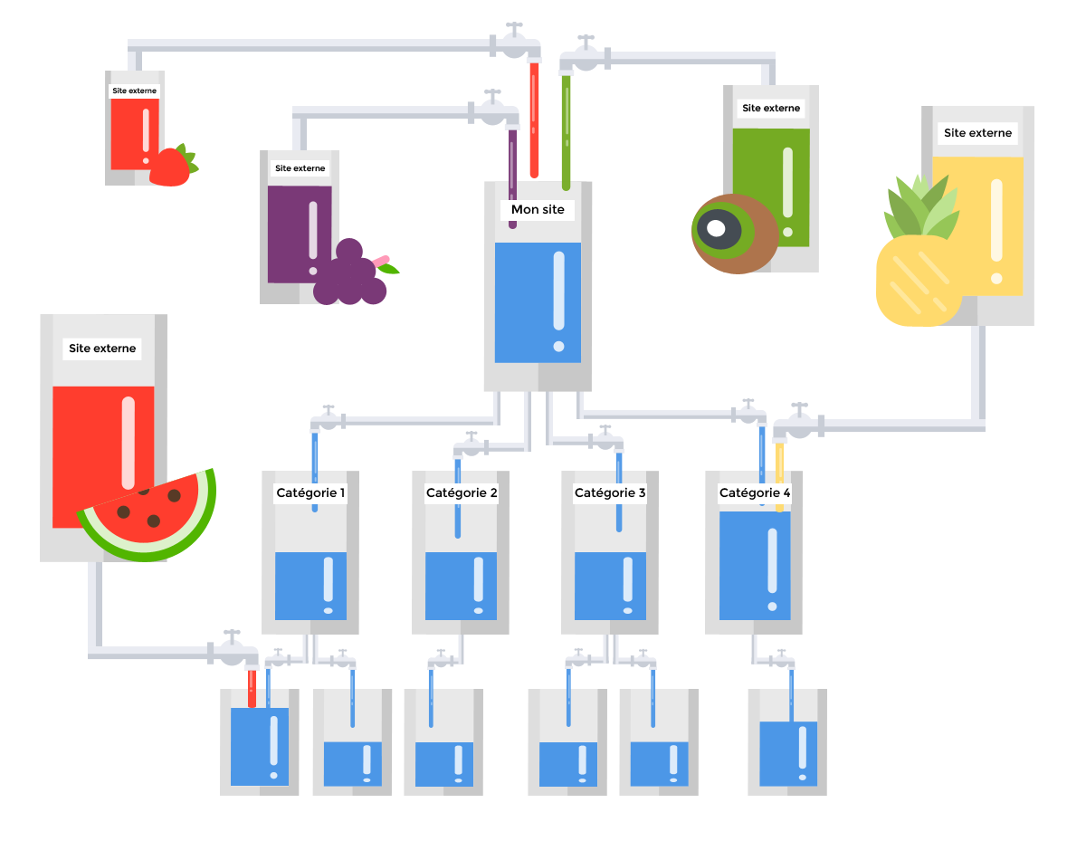 Le maillage interne est la base du SEO. Il conditionne la bonne répartition de la popularité transmise à votre site par d'autres sites tiers, comme expliqué sur l'infographie ci-dessus. Dans le même ordre d'idées, un maillage interne peu optimisé dispersera le "jus SEO", rendant ainsi une majorité de vos pages peu pertinentes.