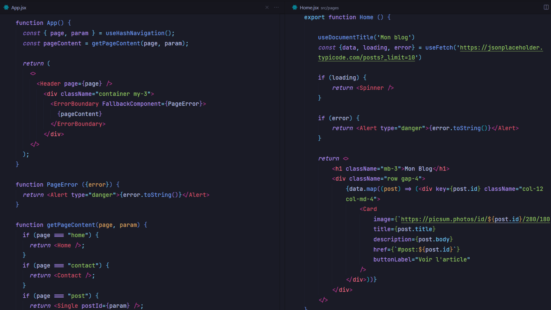 React est une bibliothèque JavaScript qui permet de simplifier la création d’interface. Elle permet une synchronisation plus simple et plus efficace entre les données de votre application et le rendu HTML.