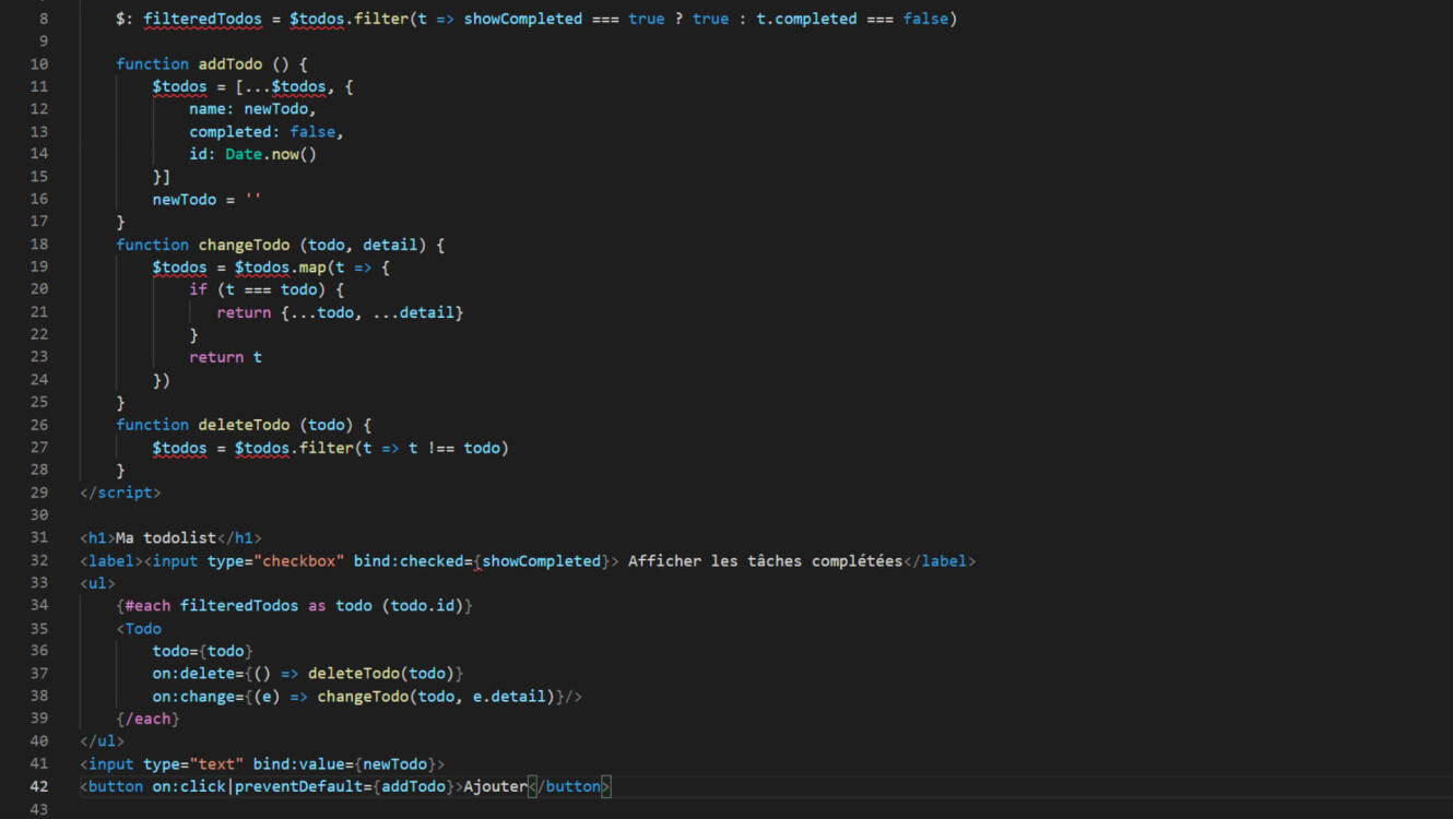 - Le poids du code final est largement inférieur et dépend du nombre de fonctionnalités utilisées dans le code. Cela permet à Svelte d'offrir un grand nombre de fonctionnalités sans forcément impacter le poids de toutes les applications.